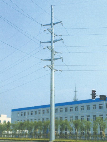 二、材料說明:材質采用Q235、Q345、Q355鋼材,一般為8棱-12棱-16棱錐形桿體,采用法蘭連接和套接兩種連接方式,壁厚分別6、8、10、12㎜不等,桿體內外熱鍍鋅防腐處理,鍍鋅層厚度均勻無色差,在65um以上,能保證二十五年以上的防腐性能要求。桿體抗風速35米/秒,抗地震裂度為8度。