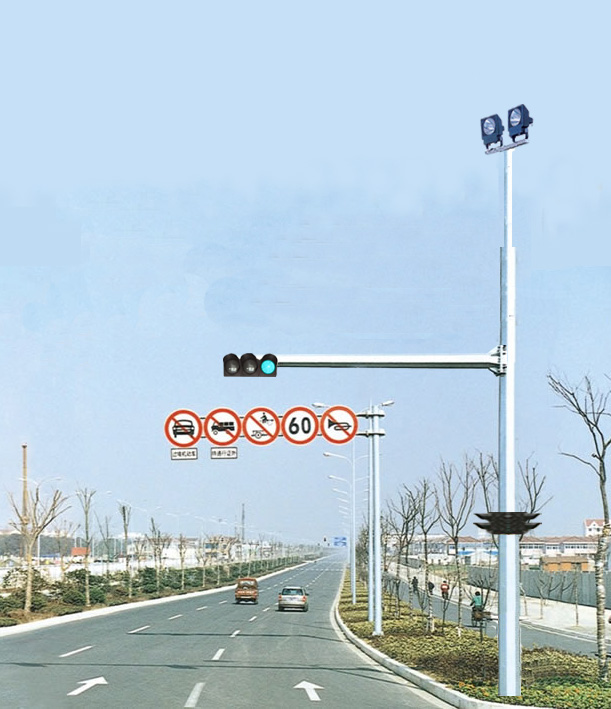 4. 交通桿一般分為橫桿和豎桿2部分組成為法蘭螺絲連接,八棱錐形桿體內外熱鍍鋅防腐處理,鍍鋅層厚度均勻無色差,在65μm以上,能保證二十五年以上的防腐性能要求。