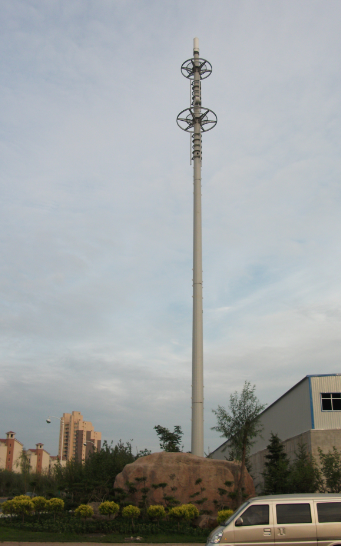 二、材料說明:材質采用Q235、Q345、Q355鋼材,一般為8棱-12棱-16棱錐形桿體,采用法蘭連接和套接兩種連接方式,壁厚分別6、8、10、12㎜不等,桿體內外熱鍍鋅防腐處理,鍍鋅層厚度均勻無色差,在65um以上,能保證二十五年以上的防腐性能要求。桿體抗風速35米/秒,抗地震裂度為8度。